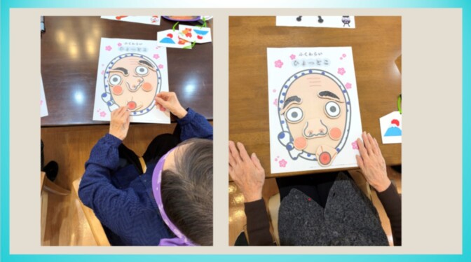 今回は新年1回目にふさわしい遊びとして、「福笑い」を行いました。