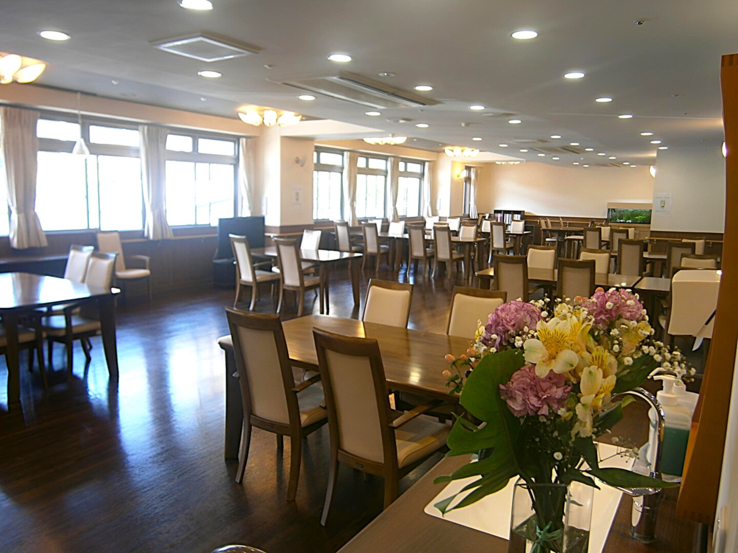 全室個室なのでご面会は24時間いつでもお気軽にお越しいただけます。居室にトイレや洗面台もあり、ご自宅と同様のプライベート空間を確保。また、緊急通報装置が各所に設置されており安心です。
