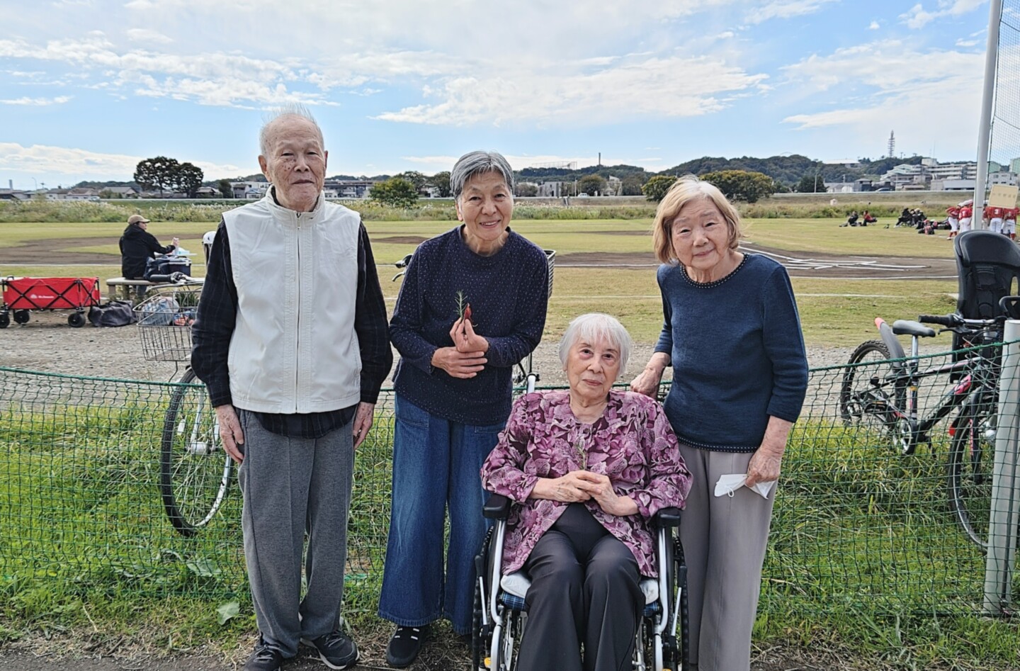 そんぽの家S調布から歩いて約5分の場所に多摩川の河川敷があり、階段を降りると綺麗な景色が一面に広がっています。