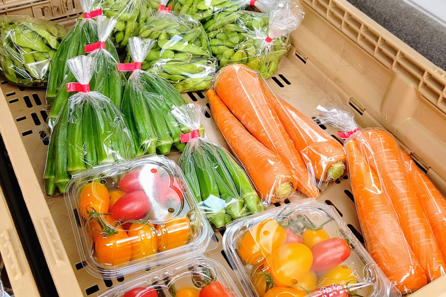 ホーム入口では新鮮な野菜やお刺身、たこ焼き、焼き鳥など販売。