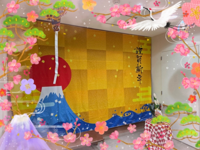 今年も玄関7,エレベーターホール、食堂と至る所に