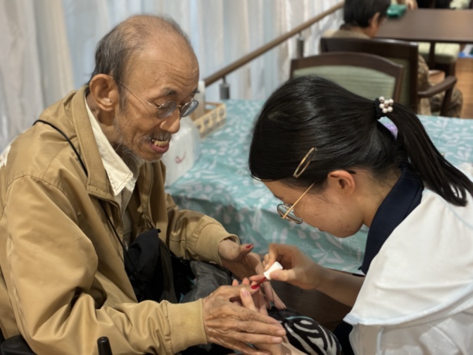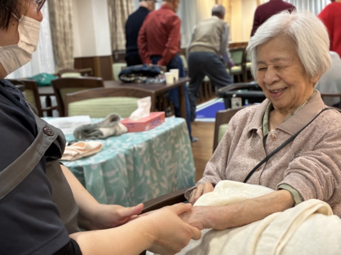 ハンドマッサージも実施。