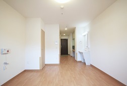 全室個室なのでご面会は24時間いつでもお気軽にお越しいただけます。居室にトイレや洗面台もあり、ご自宅と同様のプライベート空間を確保。また、緊急通報装置が各所に設置されており安心です。