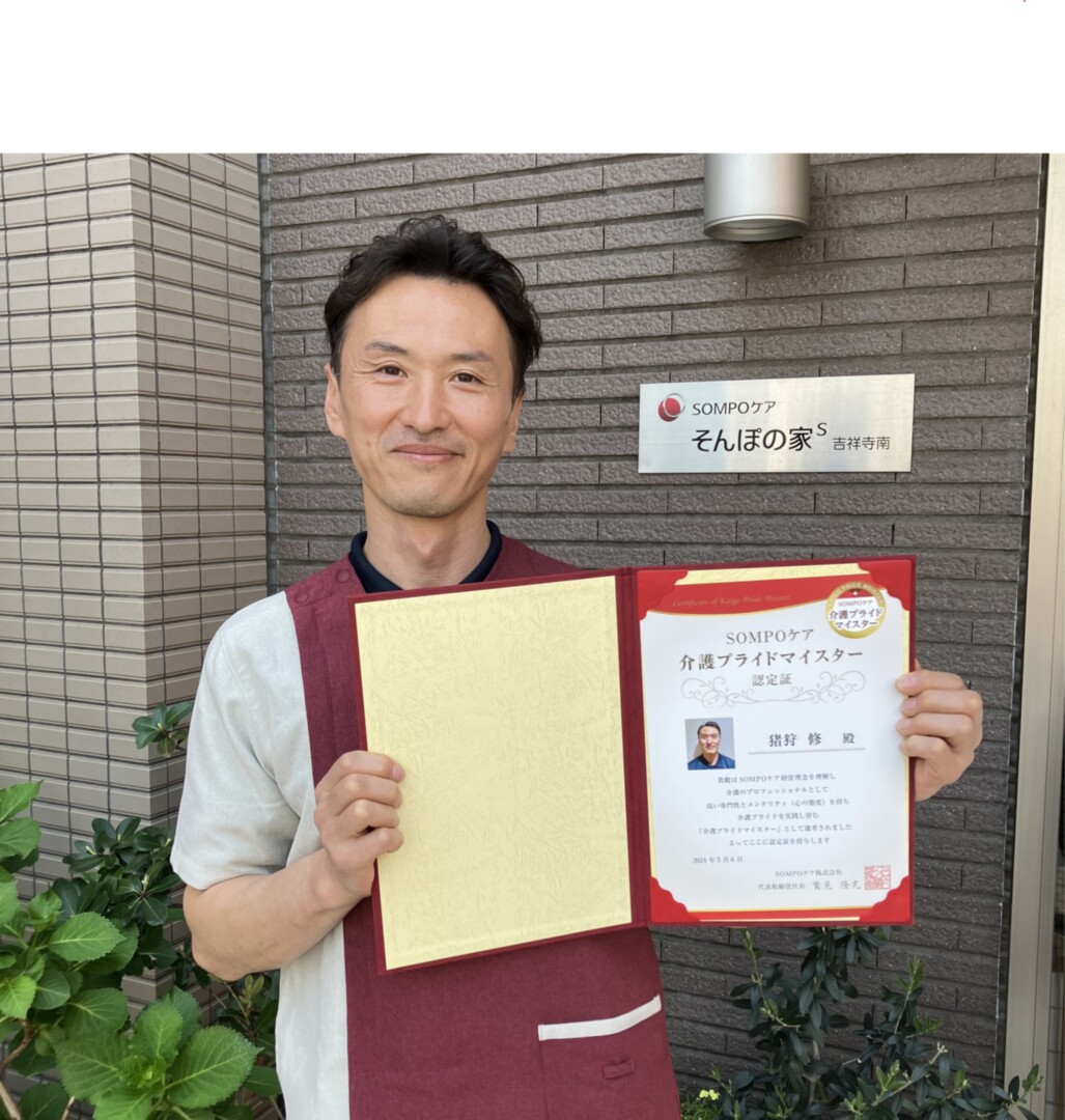 当ホームは介護プライドマイスター在籍ホームです。スタッフ一人ひとりが高い専門性と豊かな心の態度を持って、ご支援させていただきます。