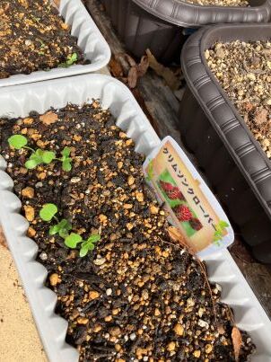 小さな芽が出てきました。大きくなるのが楽しみですね。