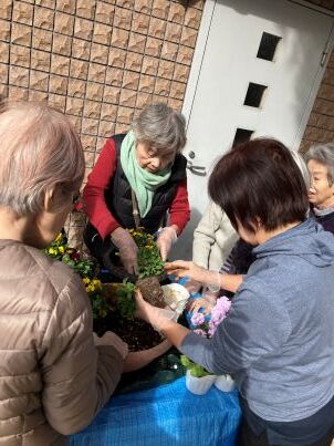 花の配置も「ここに黄色が可愛いよ」などお喋りしながらワイワイと
