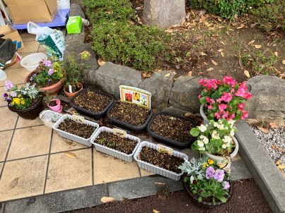 本日はビオラやストックを植えました。