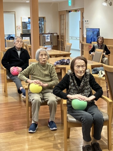 今回はカラーボールを使用した体操です。