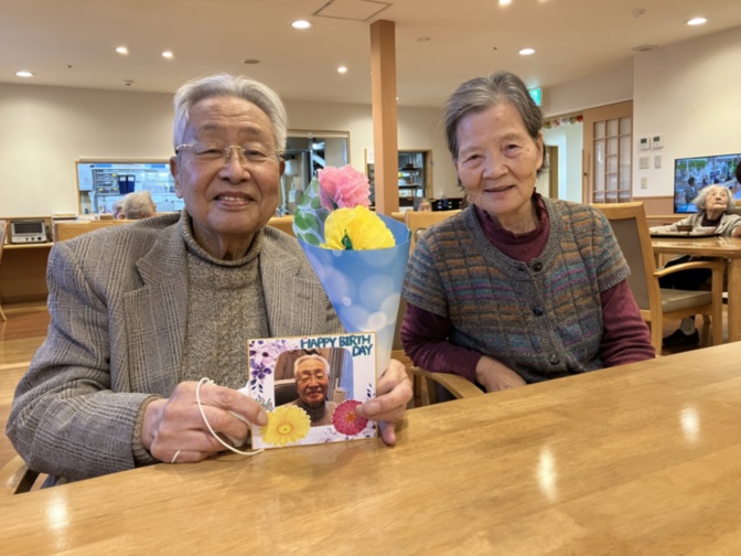 本日お誕生日とのことで、紙製の花束とバースデーカードをお渡ししました。