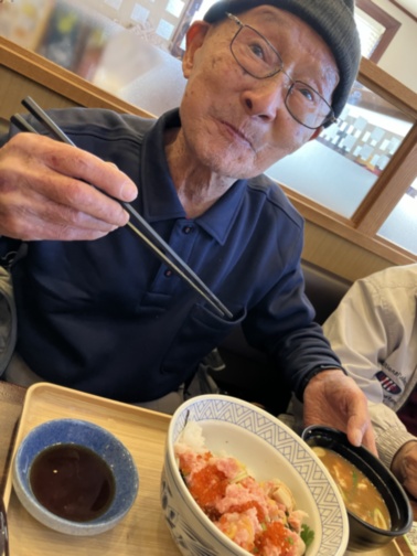 男性のご入居者さまも海鮮丼を楽しまれていました。