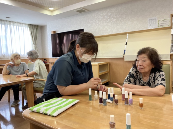 今度は黒系など男性のご入居者様もおしゃれを楽しめるようなネイルも