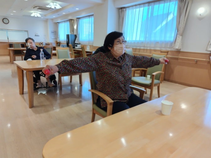 今日はダンベル体操!