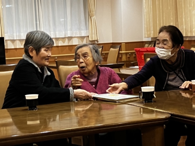 皆さまお茶などを飲みながら、頷いたり微笑まれたりと、とても楽しそうに聴いておられました。