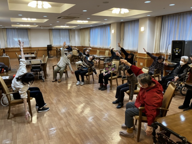 昔懐かしい童謡や昭和の名曲が流れると、自然と笑顔が広がり、簡単な振り付けをしながら楽しく全身を動かすことができました。