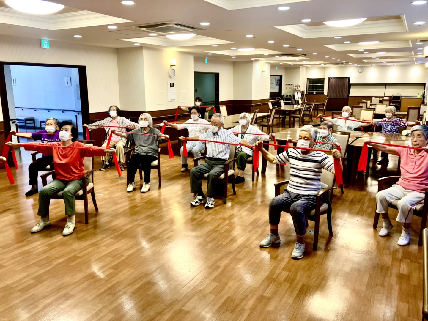 ロコモ体操、シニアリトミック、SSAP(介護予防・認知機能予防プログラム)、昭和歌謡など多彩なアクティビティをほぼ毎日開催しています。