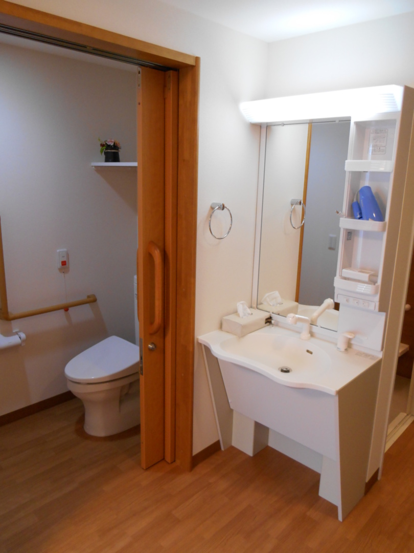 全室個室なのでご面会は24時間いつでもお気軽にお越しいただけます。居室にトイレや洗面台もあり、ご自宅と同様のプライベート空間を確保。また、緊急通報装置が各所に設置されており安心です。