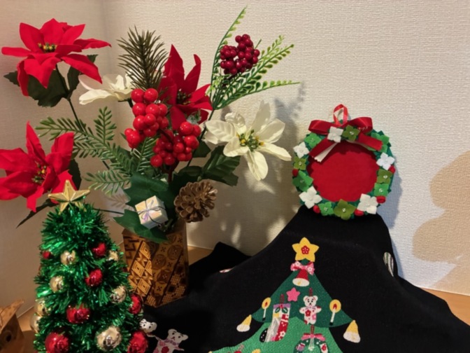 クリスマス飾りと手芸教室での作品のご紹介です。