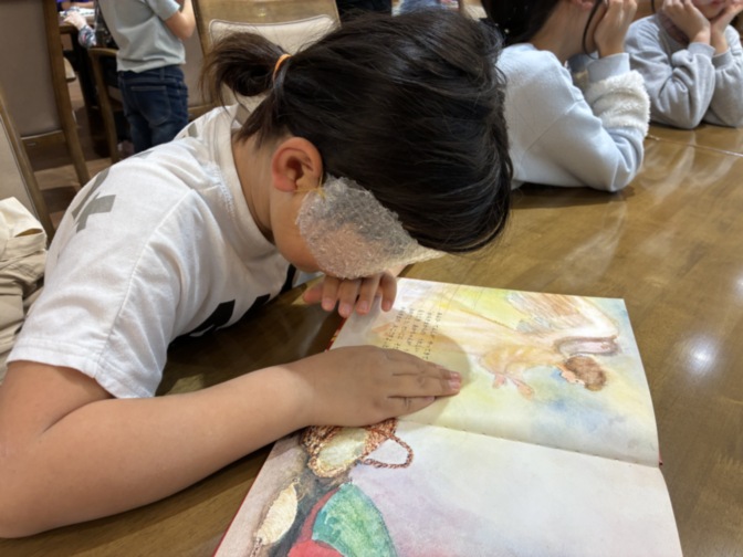 難視眼鏡を装着した状態で、本を読むなどの日常生活を体験してもらいました。