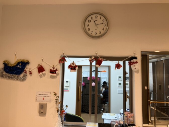 今日は、常磐野の玄関にクリスマスツリーを出して、利用者様と一緒に飾りつけを行いました(^^♪