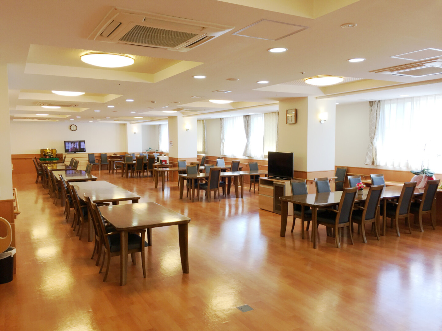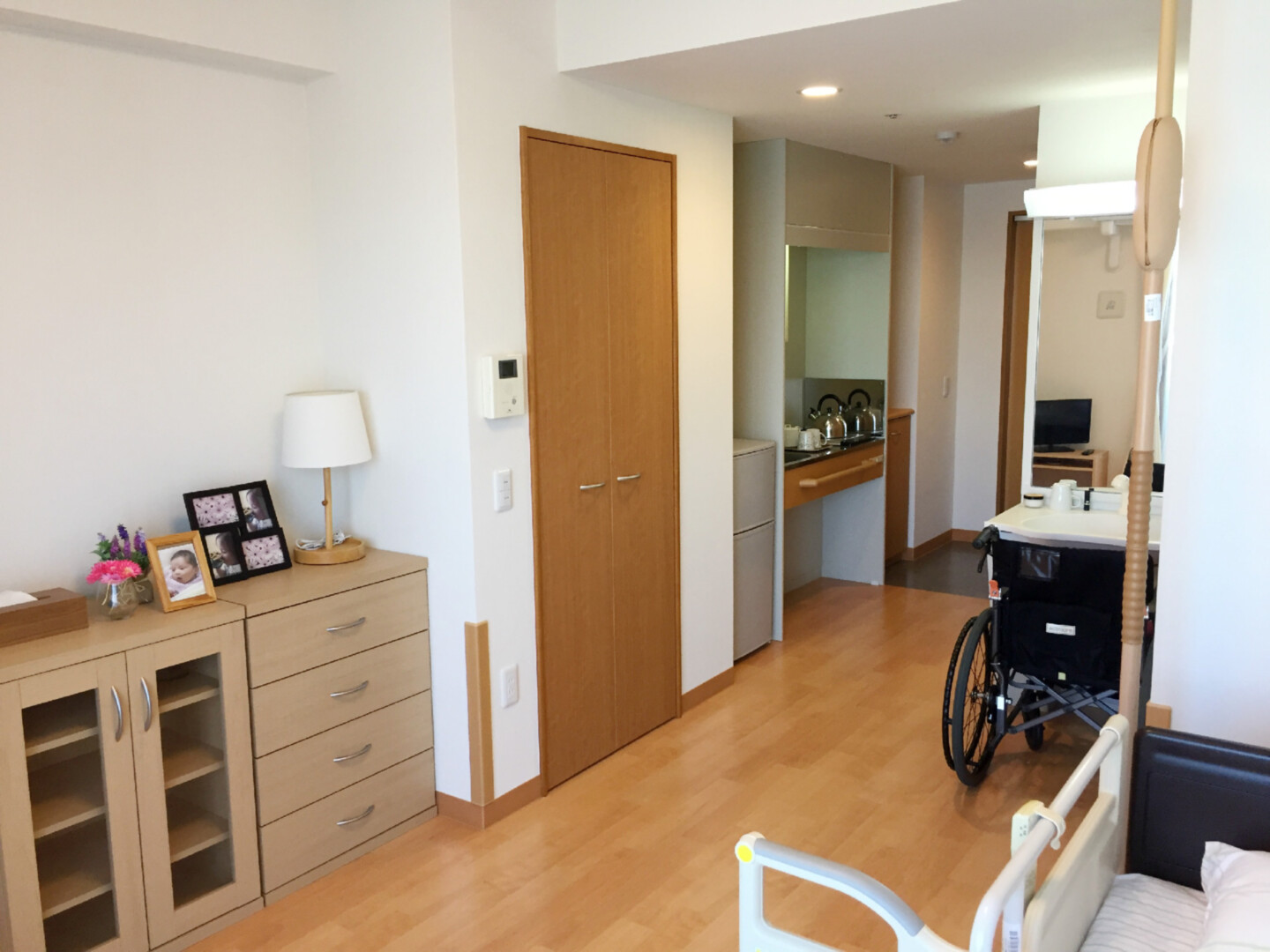 全室個室なのでご面会は24時間いつでもお気軽にお越しいただけます。居室にトイレや洗面台もあり、ご自宅と同様のプライベート空間を確保。また、緊急通報装置が各所に設置されており安心です。