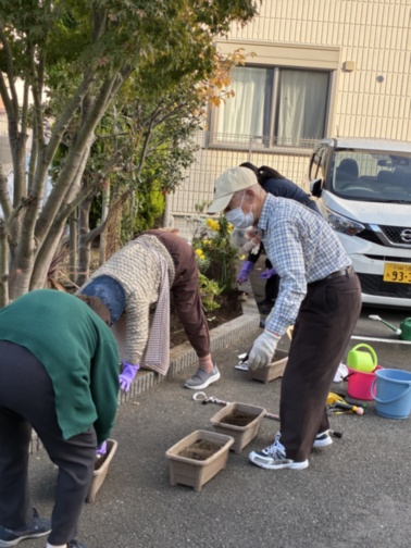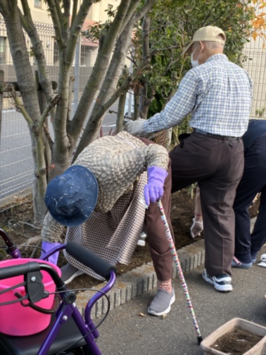 有志で体力のあるご入居様にも数名ご協力いただきはりきって作業していただきました