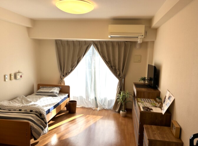 全室個室なのでご面会は24時間いつでもお気軽にお越しいただけます。居室にトイレや洗面台もあり、ご自宅と同様のプライベート空間を確保。また、緊急通報装置が各所に設置されており安心です。
