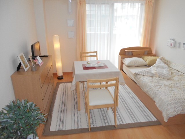 全室個室なのでご面会は24時間いつでもお気軽にお越しいただけます。居室にトイレや洗面台もあり、ご自宅と同様のプライベート空間を確保。また、緊急通報装置が各所に設置されており安心です。