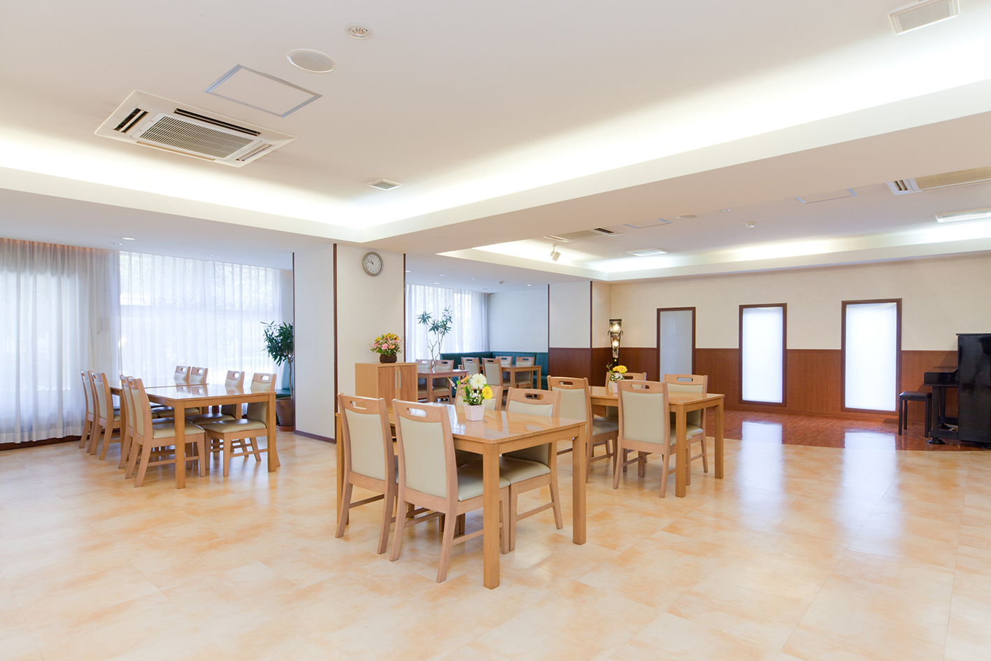 全室個室なのでご面会は24時間いつでもお気軽にお越しいただけます。居室にトイレや洗面台もあり、ご自宅と同様のプライベート空間を確保。また、緊急通報装置が各所に設置されており安心です。
