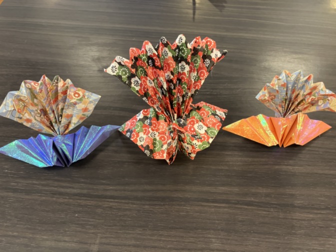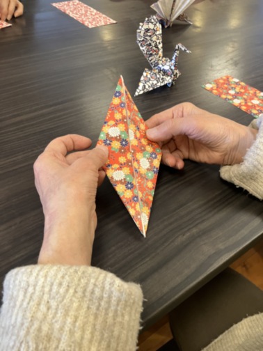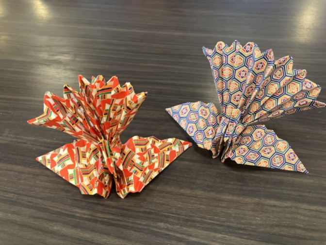 今年最初の折り紙はお正月らしく「祝い鶴」でした