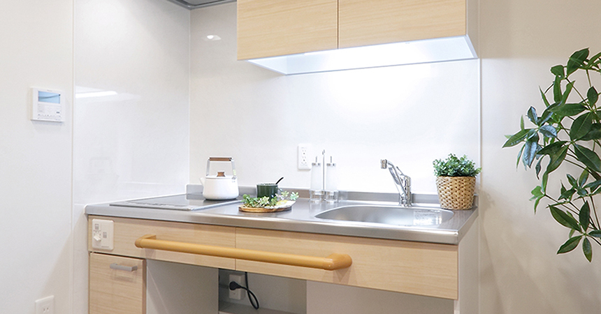 ※一部ホームでは居室にトイレが無い場合もあります各居室にミニキッチンが備え付けになっており、お好きな料理を作ってお召し上がりいただくことが可能です。