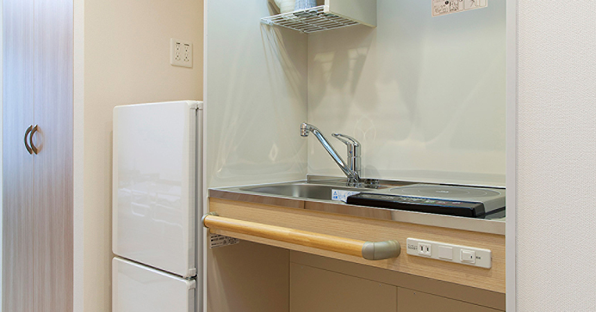 ※一部ホームでは居室にトイレが無い場合もあります各居室にミニキッチンが備え付けになっており、お好きな料理を作ってお召し上がりいただくことが可能です。