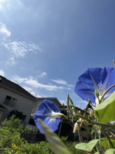 西洋朝顔は朝から夕方まで花を咲かせています❀