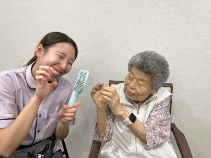 他の方の爪を見て「いいねーその色!!あなたの肌白くていいわ。」等お話しも弾み、楽しんでおられました。