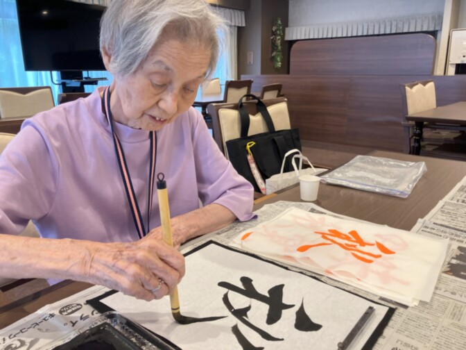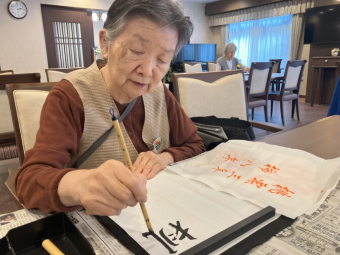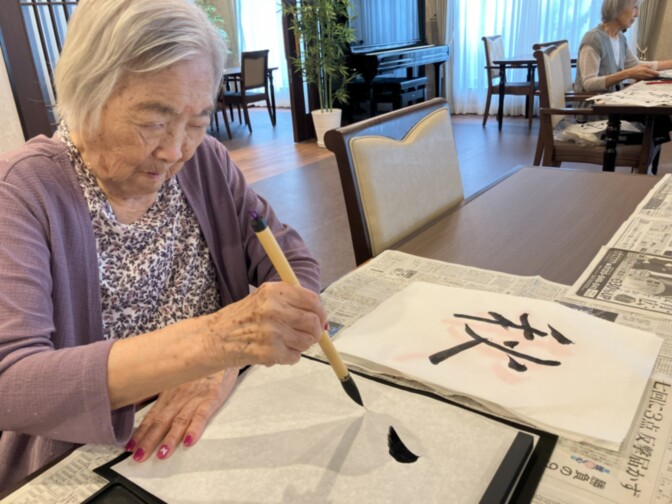 墨の香りが広がる中、皆さまは筆を手に取り、真剣な表情で一画一画を丁寧に書かれていました。先生の穏やかなご指導のもと、筆の運びや文字の形に気を配っておられました。