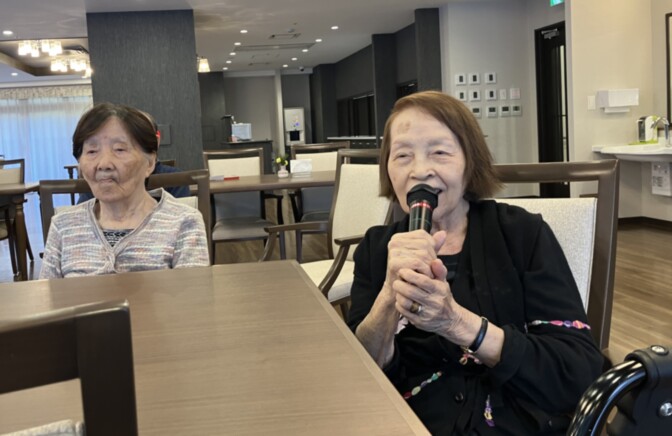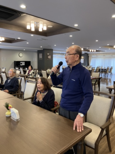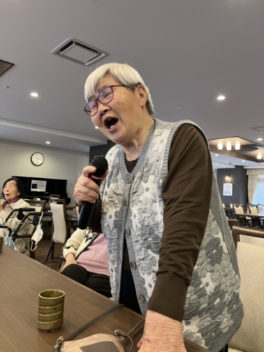 本日のアクティビティは、毎回ご好評いただいている「新春カラオケ大会」を開催いたしました。カラオケがお好きな方が多く、