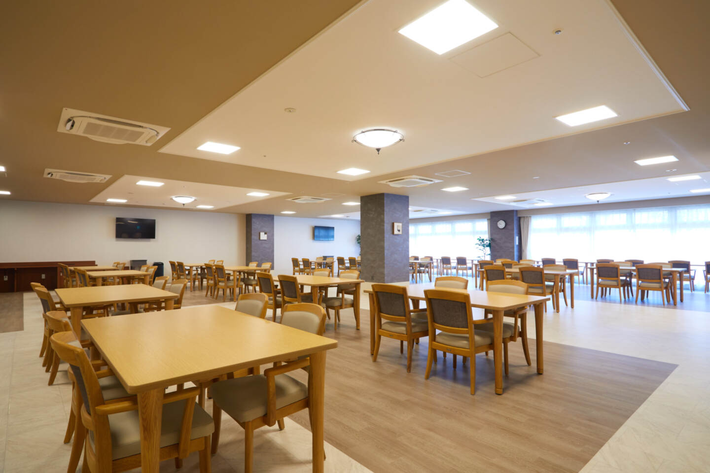 全室個室なのでご面会は24時間いつでもお気軽にお越しいただけます。居室にトイレや洗面台もあり、ご自宅と同様のプライベート空間を確保。また、緊急通報装置が各所に設置されており安心です。