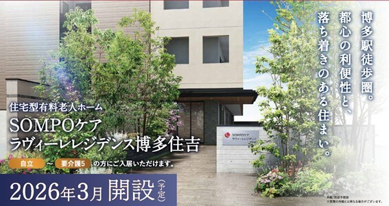 博多駅近く、伝統息づく住吉神社の杜を望む「SOMPOケア ラヴィーレレジデンス博多住吉」が誕生。