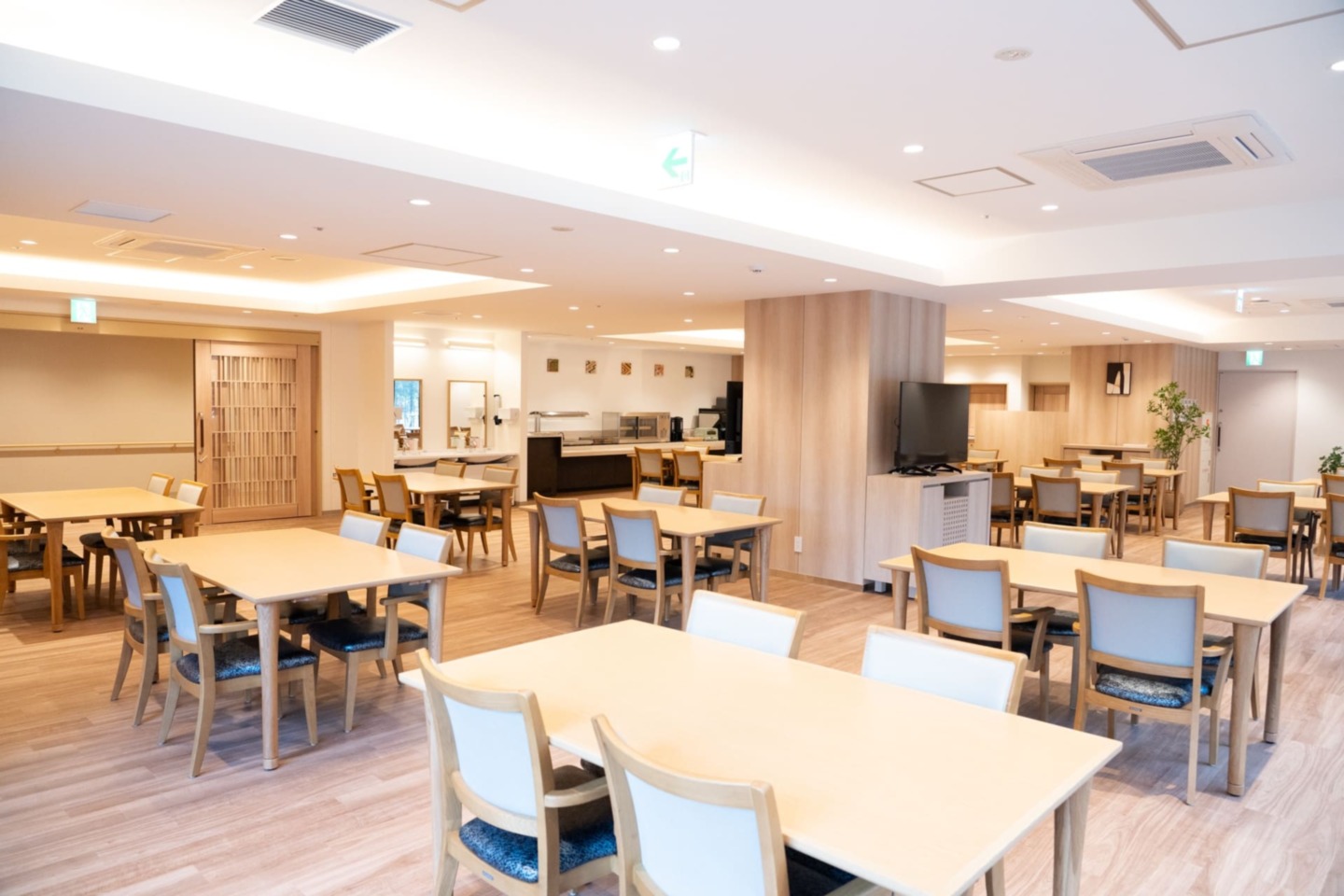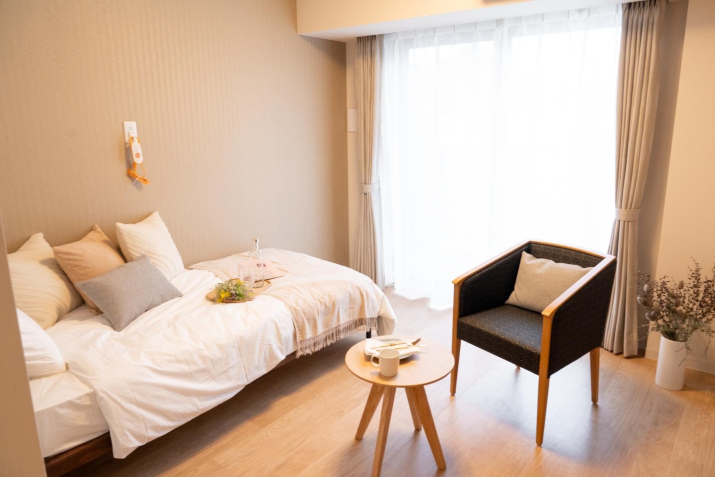 全室個室なのでご面会は24時間いつでもお気軽にお越しいただけます。居室にトイレや洗面台もあり、ご自宅と同様のプライベート空間を確保。また、緊急通報装置が各所に設置されており安心です。