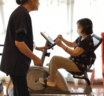 個別機能訓練・リモート体操(ダンベル、ボール、セラバンド)・SOMPOケア体操・インストラクター体操(社内資格『介護予防インストラクター』合格者)など運動にも力を入れています!