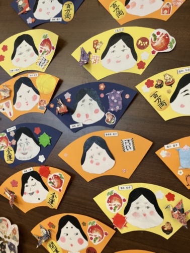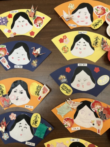 1月壁製作 お福さんの扇飾り