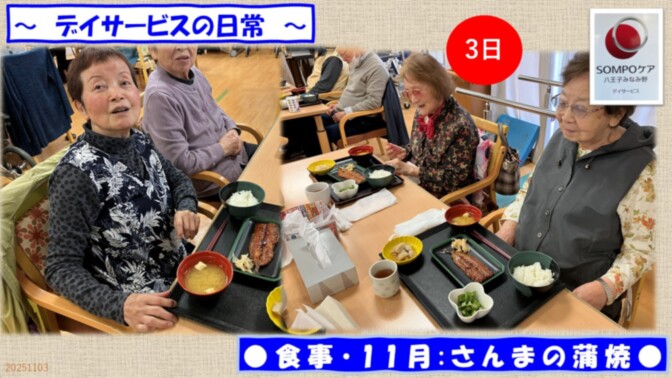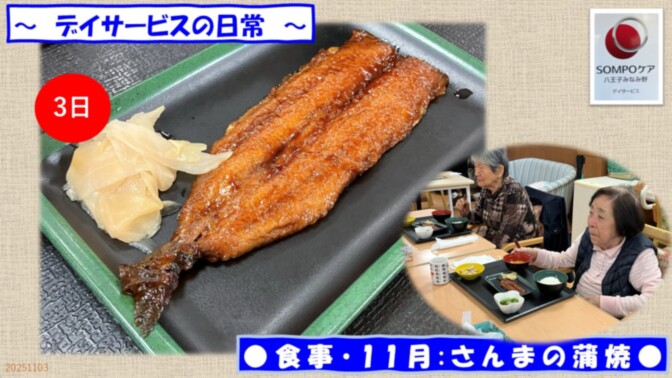 デイサービスの日常 〇 食事・11月:さんまの蒲焼 〇