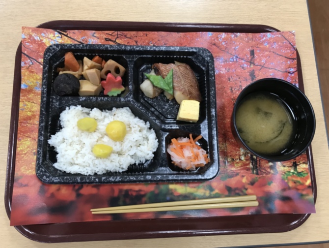 本日の吉祥寺デイサービスの昼食は「秋の松花堂弁当」です。