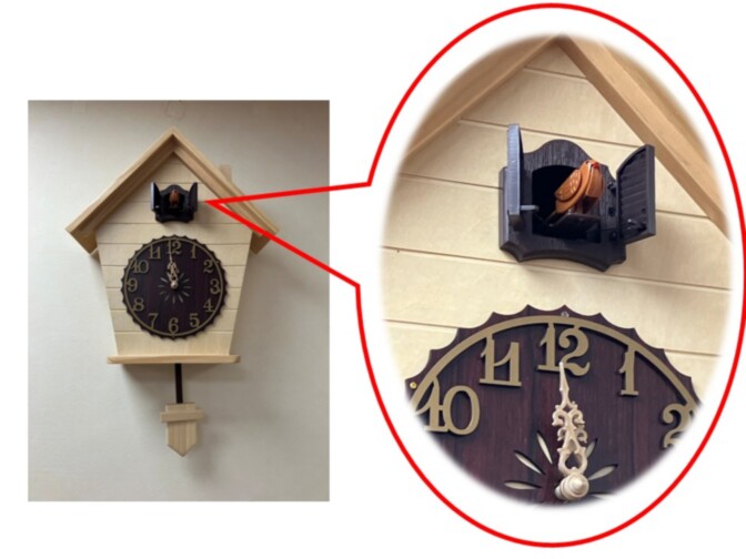 鷲見さんからはお祝いのメッセージと共に「鳩時計」を