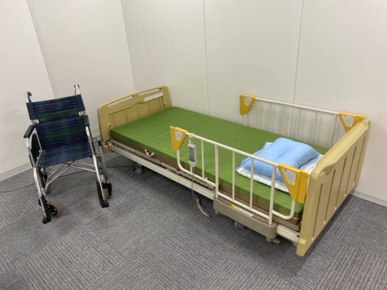 事業所内には介護ベッド、車いすがあり、介護スタッフの皆が、日々技術を磨いています。