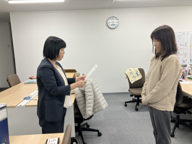 勤続年数10年の職員と20年の職員のお祝いをみんなでしました♪