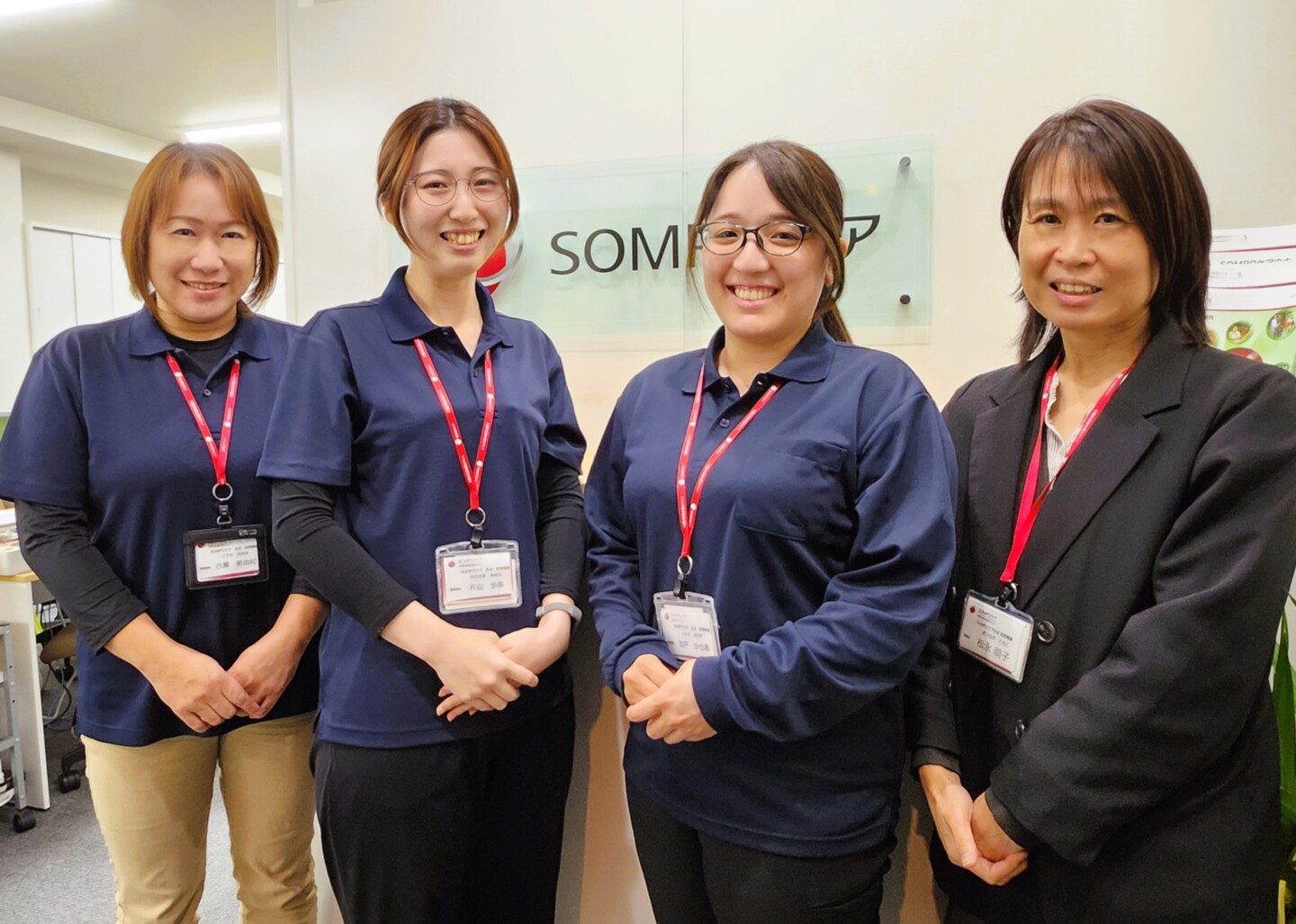SOMPOケア名北ステーションには訪問看護の他に「訪問介護」「定期巡回」「居宅介護支援」「福祉用具」の5つの事業所があります。同じ事業所に多職種が集まっているため連携がとりやすく、ご利用者さまの想いや希望を尊重し、ご自宅での安心した生活を継続していただけるよう日々尽力しております。